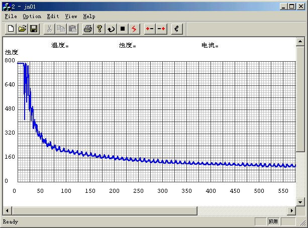 2、运行JN01.exe进入主程序,在option菜单中单击Connect选项,使电脑与浓浆电泳仪连接,如果屏幕上显示“Connect ok!”,说明计算机与仪器已连接成功。设置实验电流值,一般使用0-25mA档,小数一位。