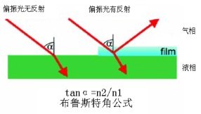 偏振光在介质表面反射、折射时,偏振度要发生变化。当入射角α为布鲁斯特角是,偏振光将无反射。若单分子膜在气液界面形成,由于布鲁斯特角度变化,将重新出现反射,利用显微镜聚集反射光线,可以观察膜的形态等其他参数。